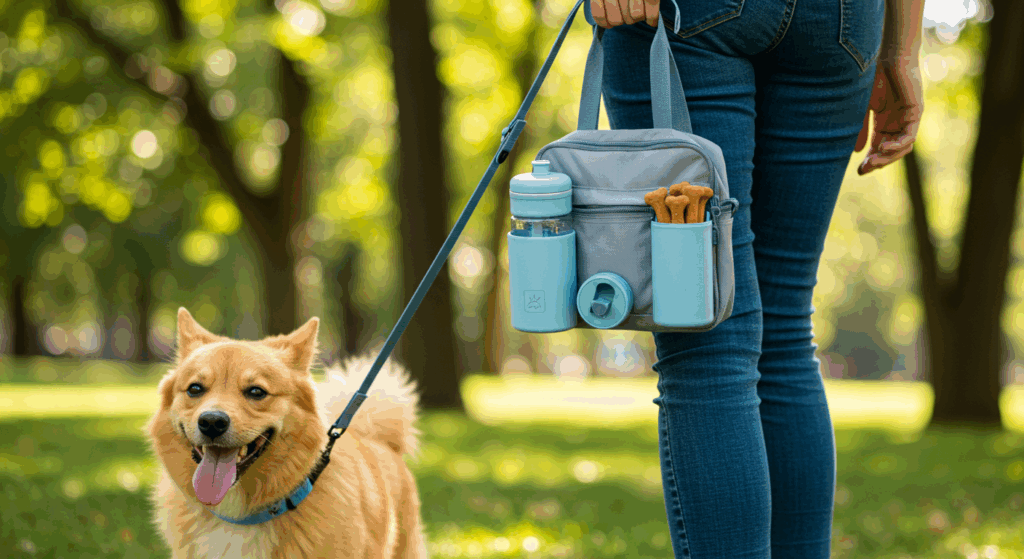 - 다기능 올인원 물병: 물통, 간식 보관함, 배변 봉투 디스펜서가 하나로 합쳐진 스마트 물병.