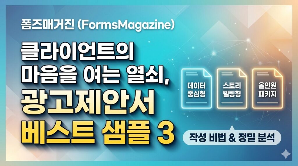 단순한 이론을 넘어, 실제로 높은 조회수와 성사율을 기록했던 3가지 광고제안서 샘플을 철저히 분석하고 성공적인 작성 가이드를 제안합니다. 지금 바로 시작합니다.