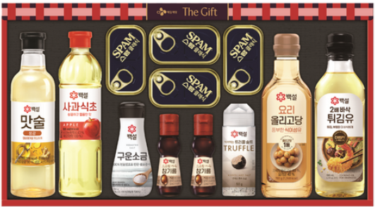 회사 동료나 대량으로 선물을 준비해야 한다면 스팸, 식용유, 김 세트 등 가공식품 세트가 정답입니다. 보관 기간이 길고 활용도가 높아 누구에게나 환영받는 실속형 선물입니다.